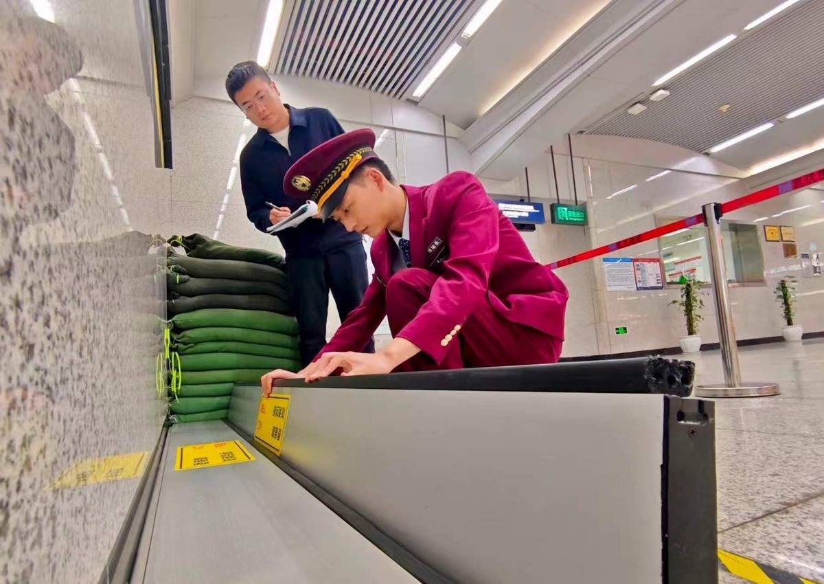 “降雨时,我们可第一时间铺设地垫和麻袋,如果出入口附近出现积水,还会利用沙袋快速搭建便民通道,方便乘客通行。”郑泽钰说。
